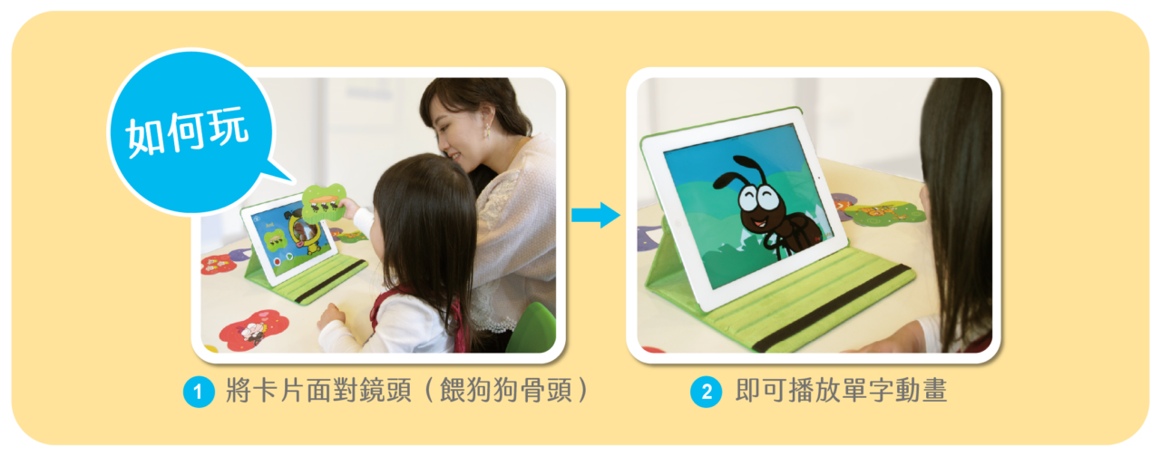 更重要的是,它跟動畫卡、角色棋結合,可以玩「親子英文對話」和「角色扮演遊戲」。